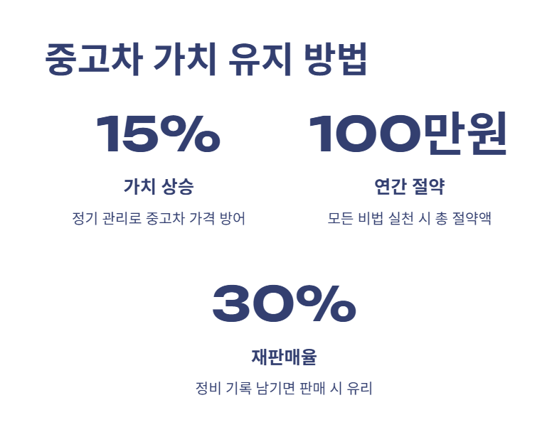 - 정기 세차, 실내 청결, 사고 이력 최소화로 중고차 가격 방어