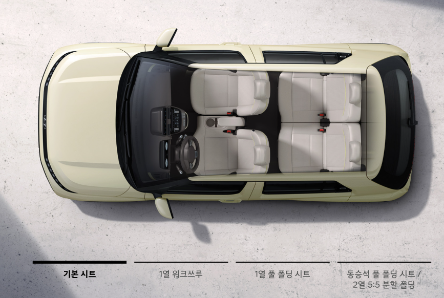 - 1·2열 폴딩, 넉넉한 실내공간, 다양한 컬러·옵션